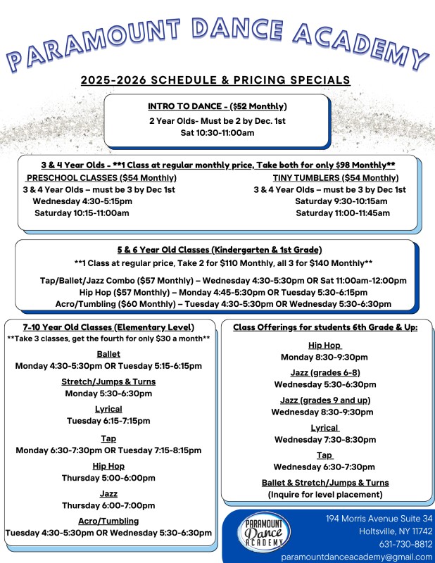 Paramount Dance Academy 194 Morris Avenue, Suite 34