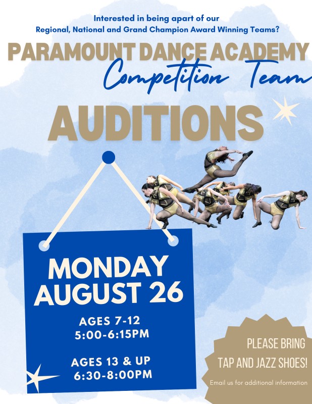 Paramount Dance Academy's Competition Team is an audition-based competitive dance team. Students will take several weekly dance classes, including: Contemporary, Jazz, Stretch/Jumps/Turns, Tap, Ballet and Hip Hop. Paramount Dance Academy Teams will perform full group numbers in 3 local competitions held in the tri-state area during the months of March, April and May. In addition, they will attend Nationals every other year. Small Group routines, as well as opportunities to compete in Solos/Duos/Trios may become available to selected students (additional fees apply). Contact the studio to set up a private audition if interested in competing for Paramount! 2015 National Champions - Sophisticated Productions National Competition, Wildwood New Jersey 2017 National Champions - Starbound National Talent Competition, Atlantic City New Jersey 2019 National Champions & Grand Champions - Starbound National Talent Competition, Atlantic City New Jersey 2021 National Champions - Starbound National Talent Competition, Atlantic City New Jersey 2022 National Champions - Backstage Competition, Hershey Pennsylvania 2023 National Champions & Grand Champions - True Talent National Finals, Long Beach Island, New Jersey 2024 National Champions & Grand Champions - True Talent National Finals, Long Beach Island, New Jersey |